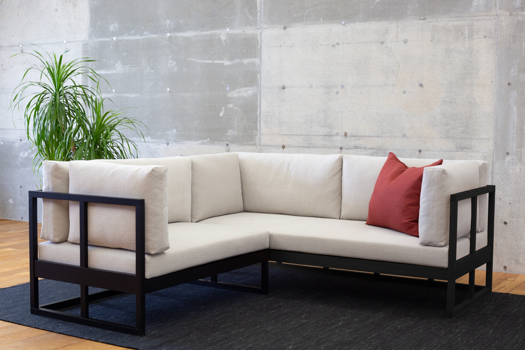 スクエアモジュラーソファはワンアームソファ(片肘)2サイズ、アームレスソファ(肘無し)2サイズ、オットマンの5つのアイテムで構成された、空間にあわせてカスタマイズできるモジュールシステムのソファです。 ミニマルでスクエアな形状に付与された絶妙な膨らみが堅苦しさを感じさせません。 高比重ウレタンによるしっとりとした座り心地ながら、高い耐久性を備えています。 座本体と背パーツ、肘パーツが金具で固定されており納入時の経路が確保できない場合は脱着も可能です。 ※アームの位置は[L][R]お選びいただけます。 ※フルカバーリング仕様