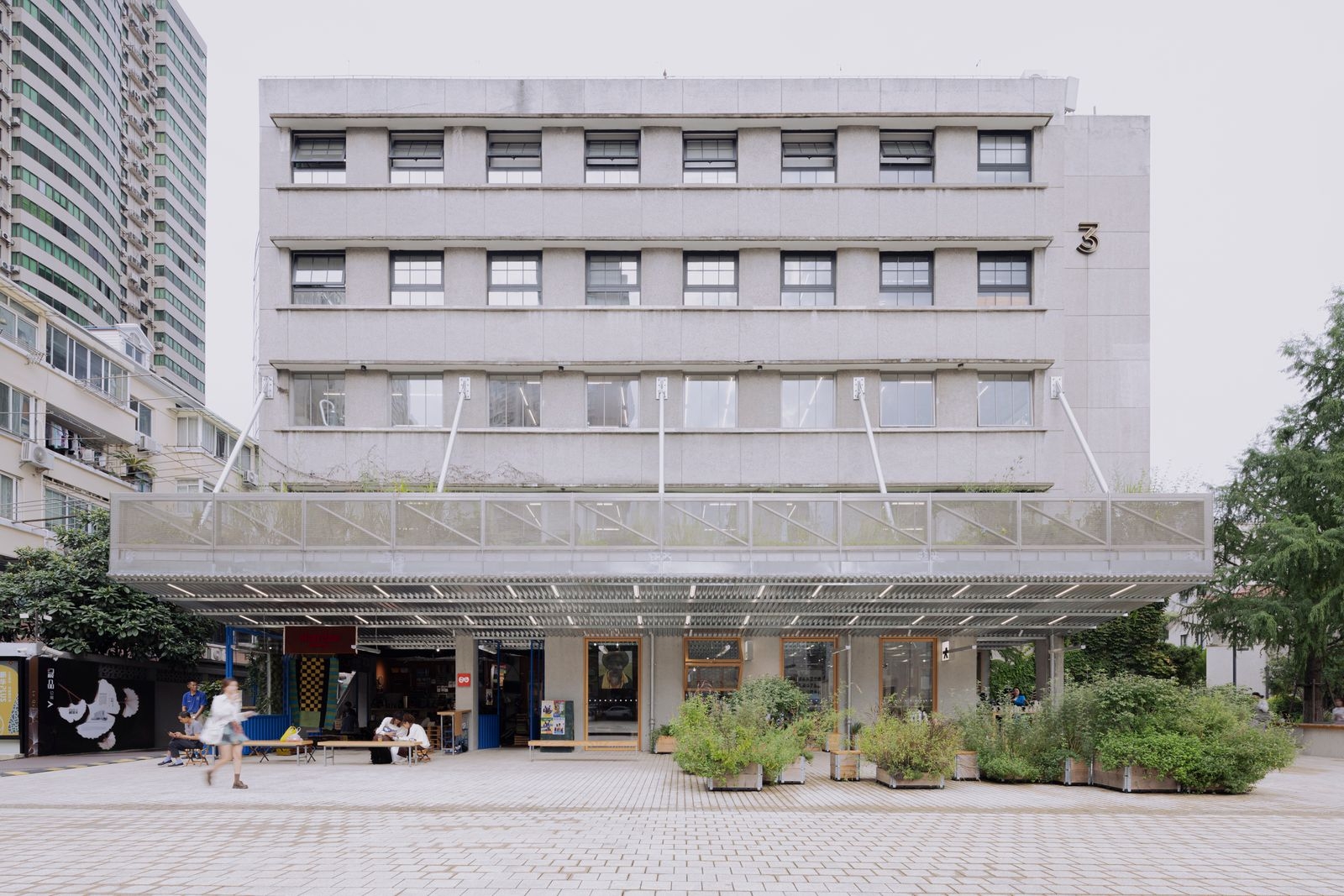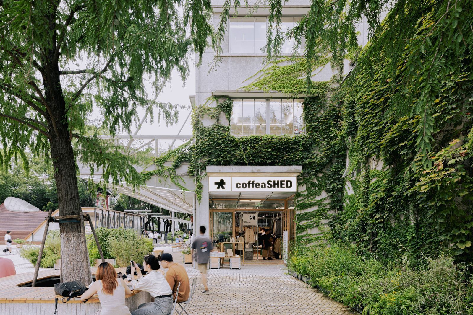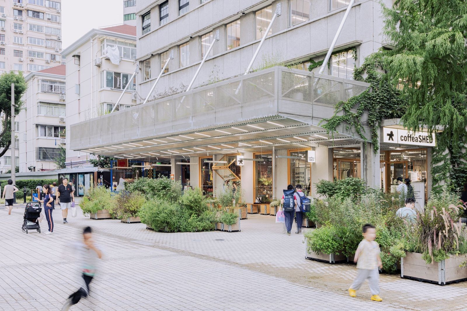 敷地は上生新所(COLUMBIA CIRCLE)の3号館に位置しています。 租界時代に“コロンビア・カントリークラブ”として上海に住んでいた欧米人達のレジャースポットとして利用されていた場所が、2018年OMAによりリノベーションデザインされ、“COLUMBIA CIRCLE”として新たにオープンしました。 coffea SHEDは農業を原点とし、住民の生活の集いの場、そして広場や地域に開かれた居場所になることを願って作られたプラットホームです。雲南省のコーヒー関連商品の販売や農業関連の商品が販売されます。 店名にも入っているSHEDは棚という雲南地方の農場に見られる農業小屋の意味です。 屋根と、それを支える木の柱だけの非常にシンプルな構造で簡易的な建築ではあるものの、その小屋の下で農作業の疲れを癒し、おしゃべりをしている何気ないゆったりとした時間は、都心にはない心地よい体験でした。 大らかで開いた空間こそが、都市部の消費者と農作物(コーヒーなど)をつなぐプラットフォームになり得ると考えました。 おおらかな’屋根の下’のデザインには、農業の倉庫などでよく使われる金属折板を採用しました。加工が容易なこの板に、照明とスプリンクラー等の消防設備を融合させています。凹凸の隙間に蛍光灯を入れ、金属折板を指示する梁にはライティングレールを仕込むことで可変的なディスプレイレイアウトにも柔軟に対応する天井デザインを実現しました。 また、外部の広場の床に使われている花崗岩と同様の素材を室内にも延長させることで内外の境界を最大限なくそうと試みました。 建物と裏手のマンションの間に小さな裏庭は改修前のものをそのまま残しています。コーヒーSHEDと「小屋」の要素を通して、広場と裏庭がつながることを意識しました。 室内も裏庭に面しており、日差しがとても明るく、植物の生命力に誘われて屋外に出たり、小屋の下でちょっとした時間を過ごしたりすることもできます。 噴水広場に面した建物は以前は閉鎖的なファサードでした。’大きな棚’が外側に広がることで、広場と風景が室内にも広がり、人々がさまざまな方向から自由にこの屋根の下に集うのではないでしょうか。