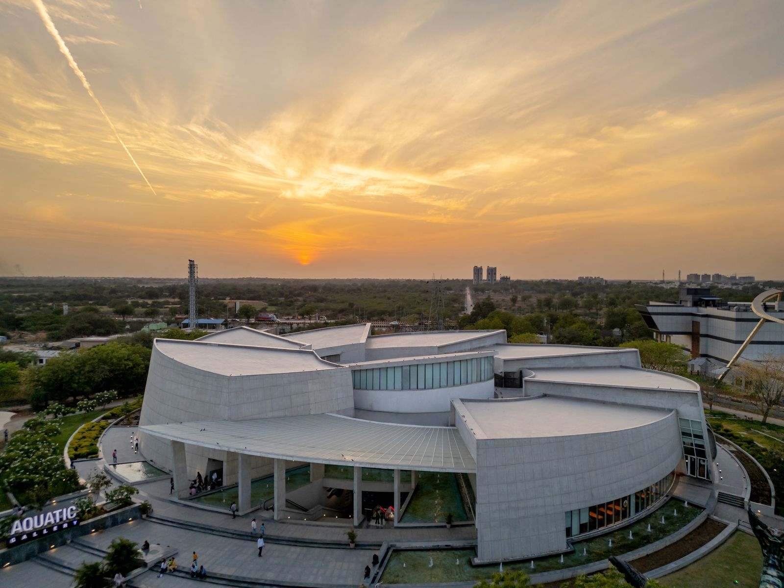In this emerging environment of knowledge-driven economic growth, it is imperative to inculcate a scientific temper in the community. The Gujarat Council of Science City, established by the Government of Gujarat, has developed the Aquatic Gallery to realize this vision. This 5th generation facility, part of the sprawling 200 acres Ahmedabad Science city, is India’s largest and first planned public inland aquarium, catering to the vision of edutainment. Attracting more than 1 million people annually, the Gallery is designed to bridge the gap between formal science education and the community at large. The design of the Gallery is inspired by the intricate and harmonious forms in Nature; the spiralling, mysterious galaxies and the exquisitely proportioned shells found along the Gujarat coast. The primary inspiration is the nautilus, a marine mollusc, which has a beautifully segmented and spiralled shell, formed by a series of interconnected chambers, arranged in a precise and geometrically progressive manner. A metaphor for the interconnectedness of science, the dynamic evolution of knowledge, and the continuous exploration of the universe, the circular, segmented and spiral organization of the viewing galleries, allows seamless movement through spaces of increasing size and continuity. A steel and glass canopy, resembling a cantilevered petal, amplifies the entrance's appeal, while the 27.5m diameter central atrium, crowned with a steel deck slab, provides a multipurpose space from where the galleries emanate; its form rises at the centre of the spiral, reaching upward for light through clerestory windows. The exposed RCC exterior surfaces impart a dynamic visual quality, including shadow interplays on the façade, with openings resembling the gills of a fish. Visitors are treated to an engaging sensory experience, enhanced by well-integrated lighting, AV technology, projections, interactive features & environmental graphics. Both form & detailing prioritize structural stability & resilience against seismic activities & other natural calamities. The Aquatic Gallery showcases 71% of Earth’s surface at an average depth of 3.5 km, featuring an underwater viewing walkway, multi-level viewing gallery, interpretation centre, & a monumental water-world map floor mural. The 72 exhibit tanks house 12,000 fishes of 180 species, native to various regions and categorized into zones. The life support systems (LSS) provide precise water parameters, including salinity, pH, & TDS levels, chemical oxygen, etc. Laboratories and quarantine areas facilitate regular checkup and testing. The exhibits are housed on the lower level, enabling most of the water loads to remain at ground level within a controlled environment. The taller southern side self-shades portions of the building at all times, & service areas along the perimeter insulate the aquariums from direct heat, enhancing operational efficiency. The exterior utilizes exposed green concrete, fly ash bricks, metal and glass, creating an insulated envelope. High-performance, low-e glazing system, and intelligent automation, curtails energy consumption, while solar rooftop panels harness renewable energy. The centralized Chilled Water Energy Efficient System saves 90 tons of cooling, while Integrated Building Management Systems (IBMS) compatibility is maintained through RS-485 equipped meters. Rainwater harvesting, wastewater reuse and efficient plumbing fixtures raise the sustainability quotient.
